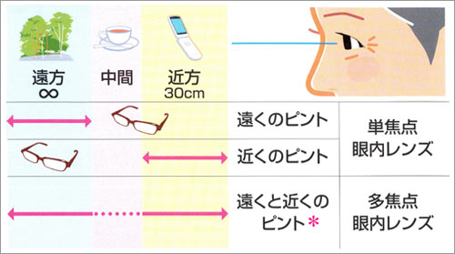 眼内レンズには、ピントを合わせる調節力がないので、眼鏡が必要になります。
